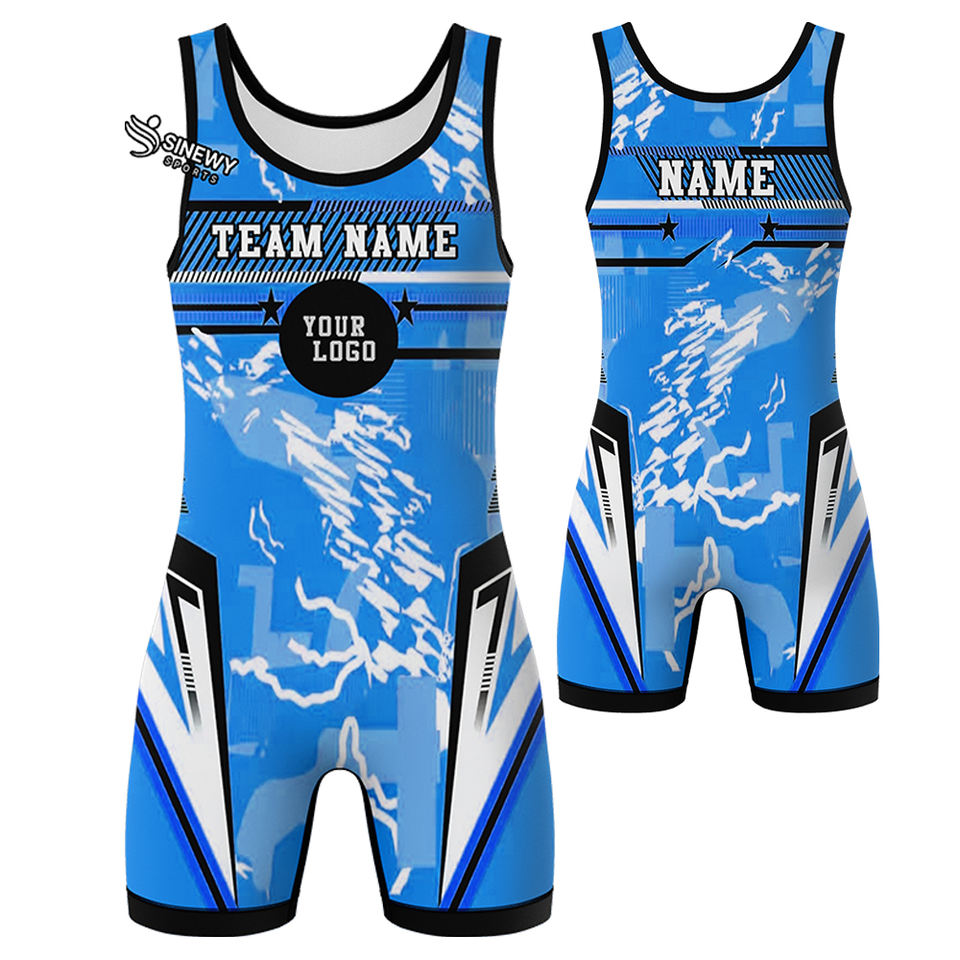 ชุดนักมวยปล้ำชายแบบไฮคัท สีน้ำเงิน น้ำหนักเบา สำหรับฝึกซ้อมและการแข่งขัน