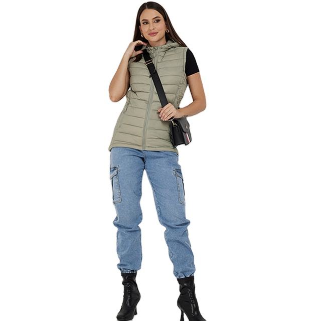 เสื้อฮู้ดดี้ผู้หญิงแบบสวม ดีไซน์ขายดี ทรงเข้ารูป ซิปยาวเต็มตัว ไม่มีแขนเสื้อ