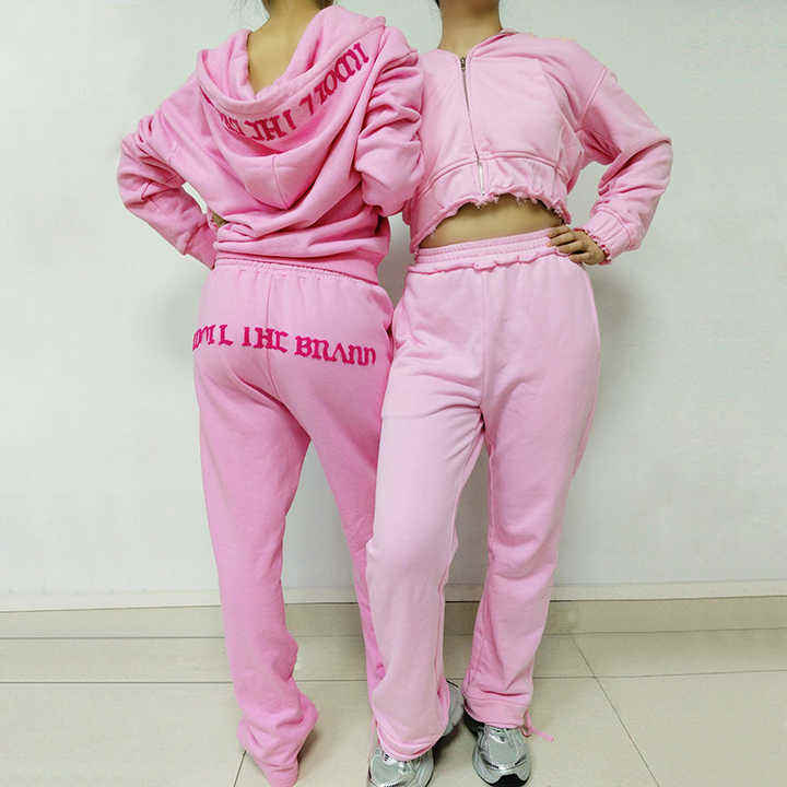ชุดวอร์มขาบานสำหรับผู้ชายและผู้หญิงชุดฮู้ดล้างกรดมีซิปออกแบบได้ตามต้องการ