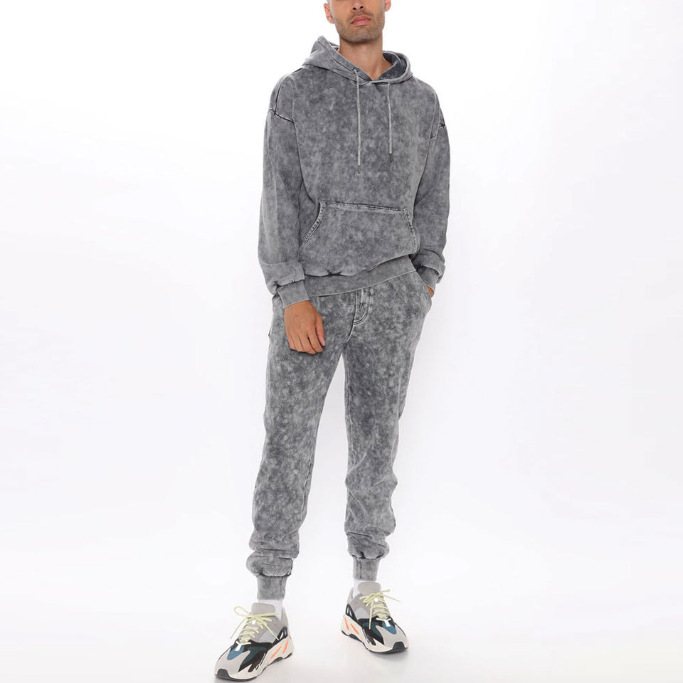 ชุดกีฬาสำหรับผู้ชายชุดวอร์มมีฮู้ดและกางเกงขายาวซักด้วยกรดชุดวอร์มออกแบบได้ตามต้องการ