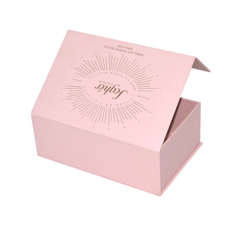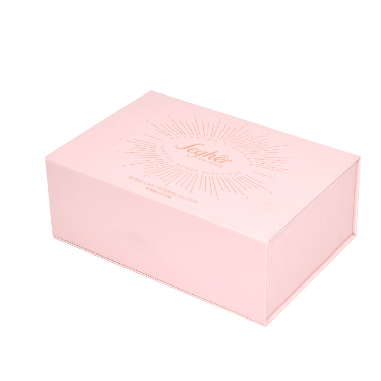 กล่องของขวัญเครื่องสำอางสีชมพูแบบแม่เหล็ก สำหรับบรรจุภัณฑ์ผลิตภัณฑ์บำรุงผิวและน้ำมันหอมระเหย พร้อมบริการปั๊มร้อนแบบกำหนดเองสำหรับกล่องสินค้าความงามระดับพรีเมียม