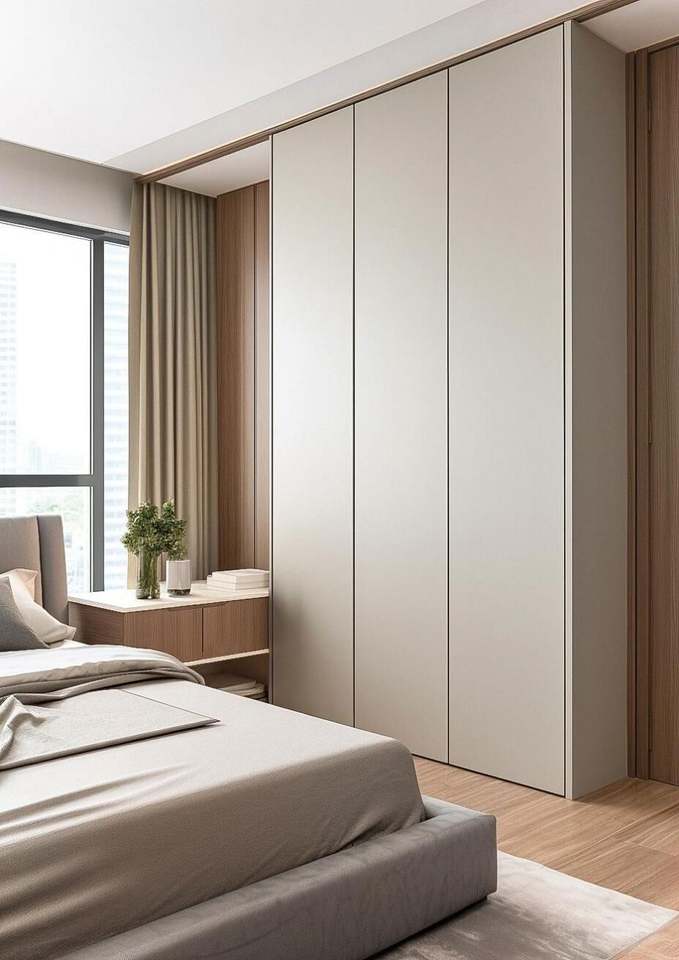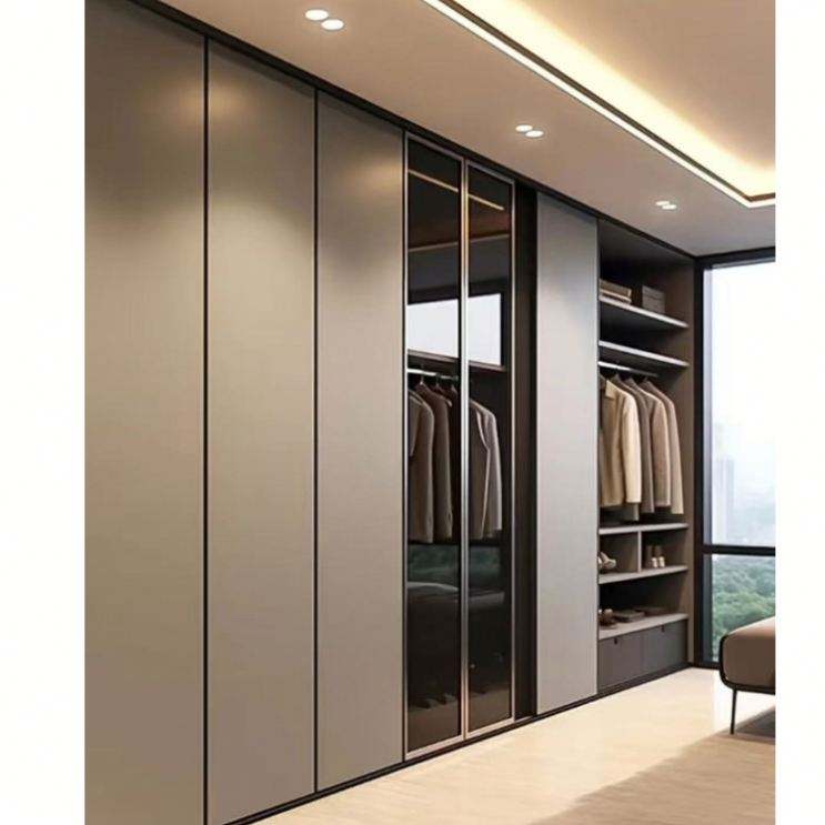 ตู้เสื้อผ้าไม้ตู้ประตูกระจกตู้ไม้อัดปรับแต่งได้ทันสมัยเฟอร์นิเจอร์โรงแรม