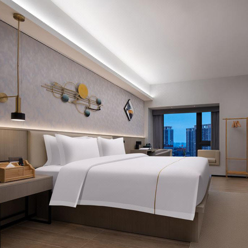เตียงและที่นอนของโรงแรมพร้อมหัวเตียงและโต๊ะข้างเตียงโรงแรมทำจากไม้ขนาดเตียงคู่แบบกำหนดเอง