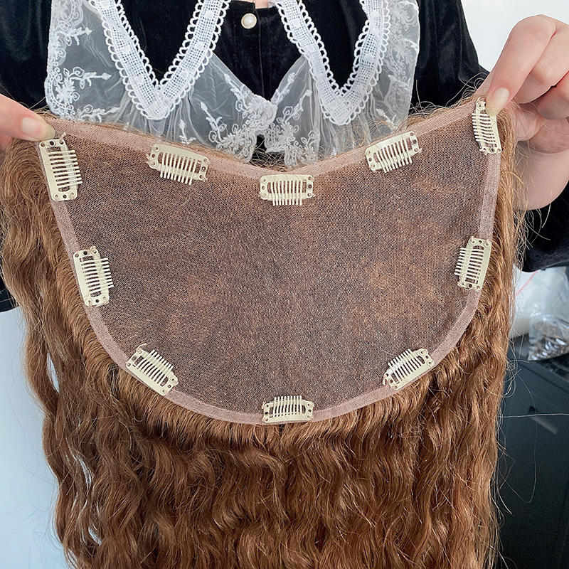 คลิปผมแท้ลูกไม้สีน้ำตาลล้วนจากมนุษย์,ที่ปิดผมลอนธรรมชาติดิบเกาลัดมือที่ยังไม่ผ่านกรรมวิธี