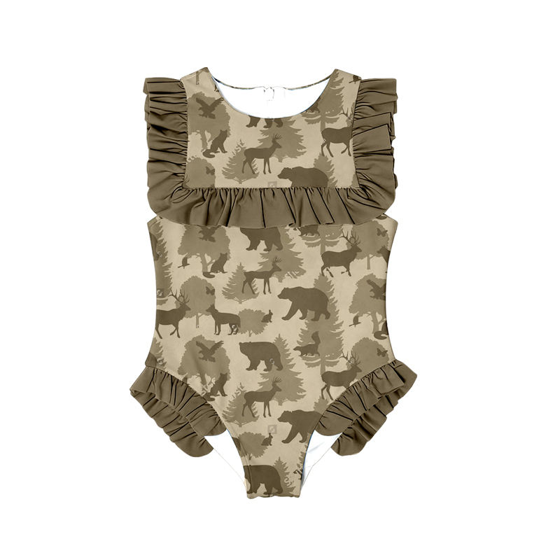 Custom Hunting Camouflage Mallard Ducks Elk Print Cute Baby Girls Clothes Swimsuit Toddler Romper Sister Kids Clothes Swimwear