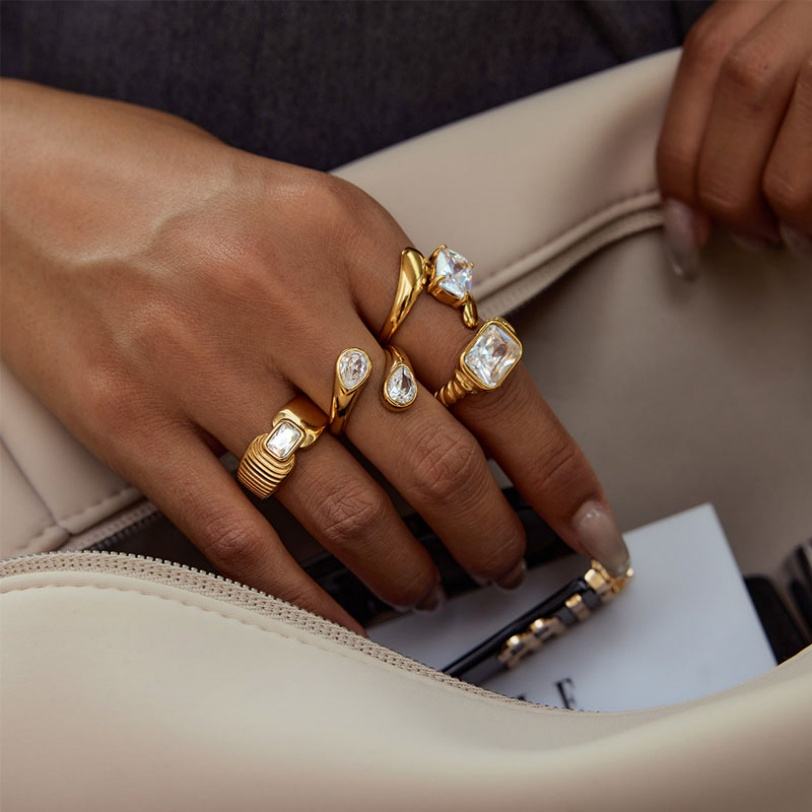 แหวนสแตนเลสสตีลชุบทอง 14k 18k ประดับเพชรซิร์คอน ดีไซน์กันน้ำ ไม่ก่อให้เกิดอาการแพ้ ไม่หมองคล้ำ สำหรับผู้หญิง