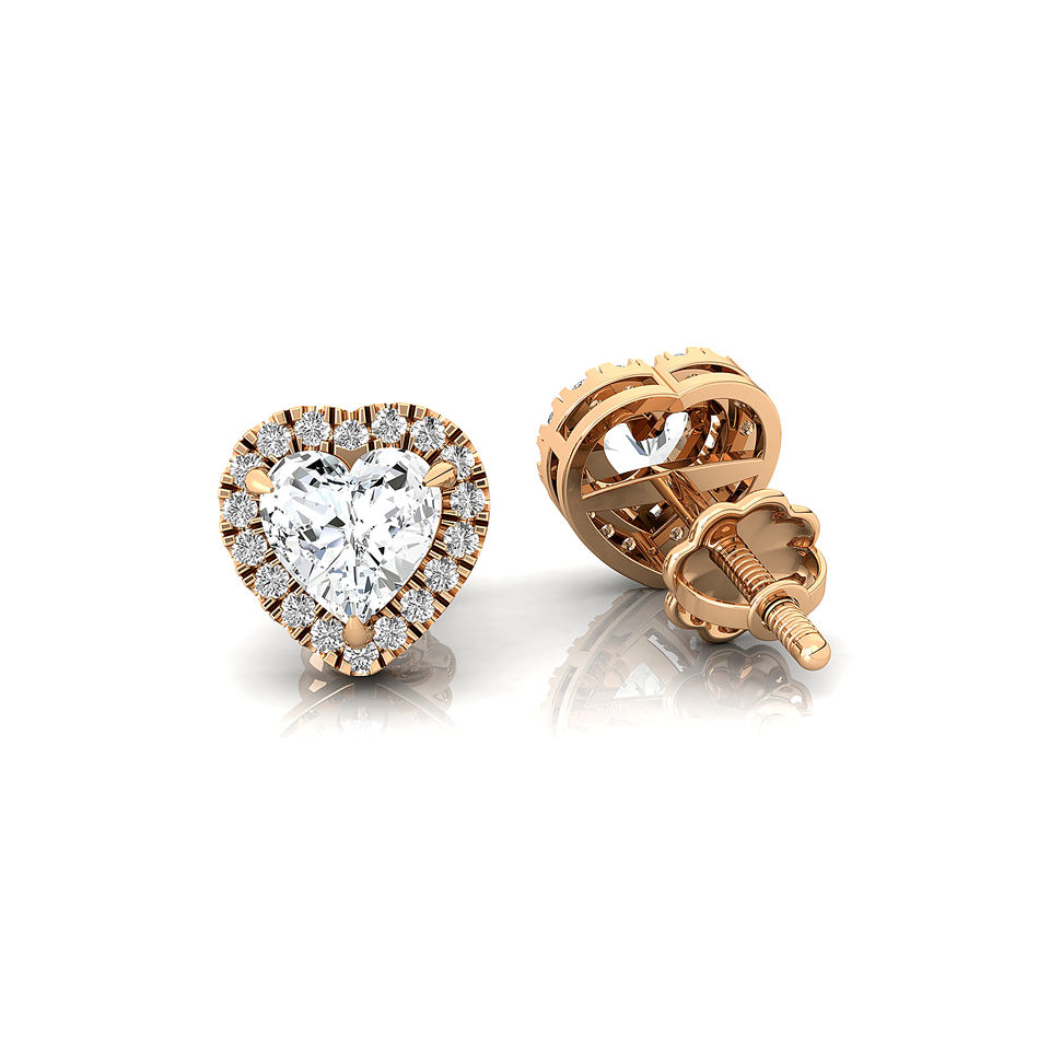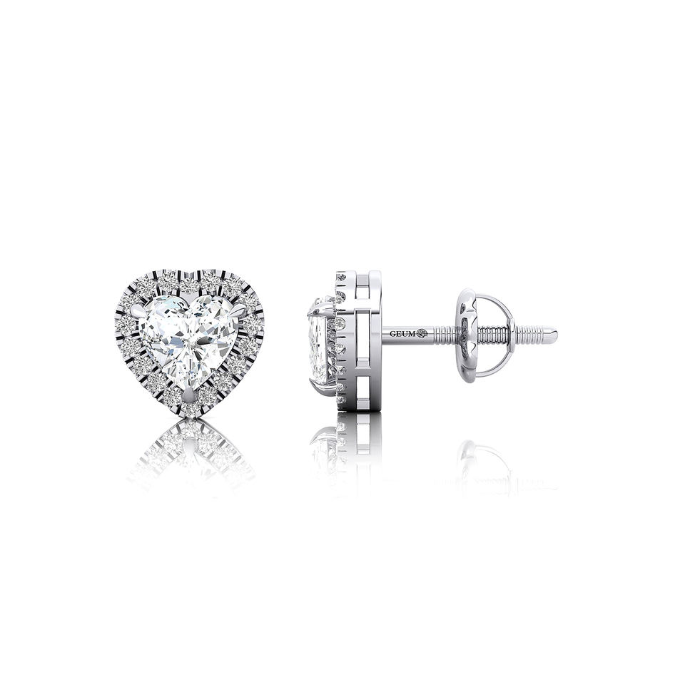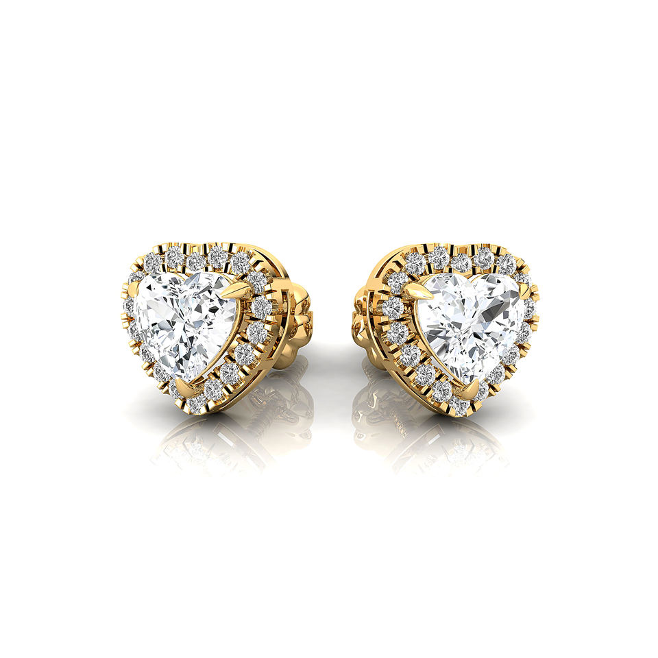 ต่างหูเพชรทรงหัวใจขนาด 1 กะรัต 6.5 มม. ผลิตในห้องปฏิบัติการ พร้อมเพชรประดับ 36 เม็ด ทอง 14k รับรองโดย IGI เครื่องประดับผู้หญิงสุดหรู