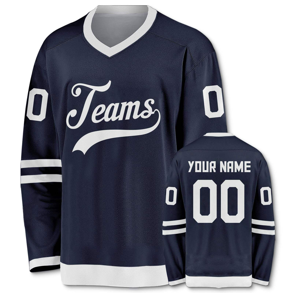 Custom Ice Hockey Jersey Navy Blue White Stripe Team Uniform Personalized Name Number 100% Polyester Anti-Bacterial Quick Dry