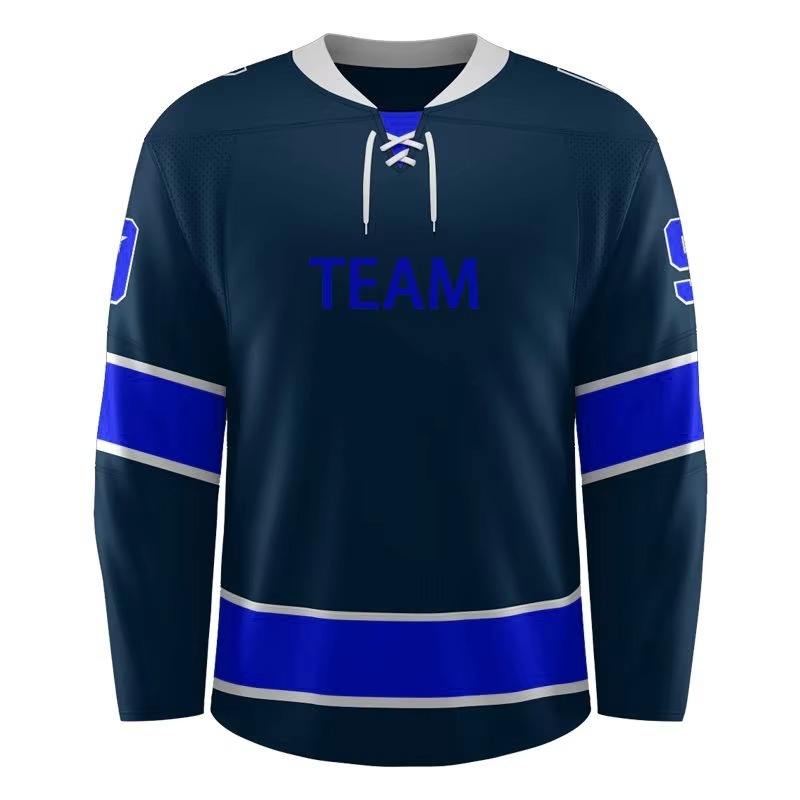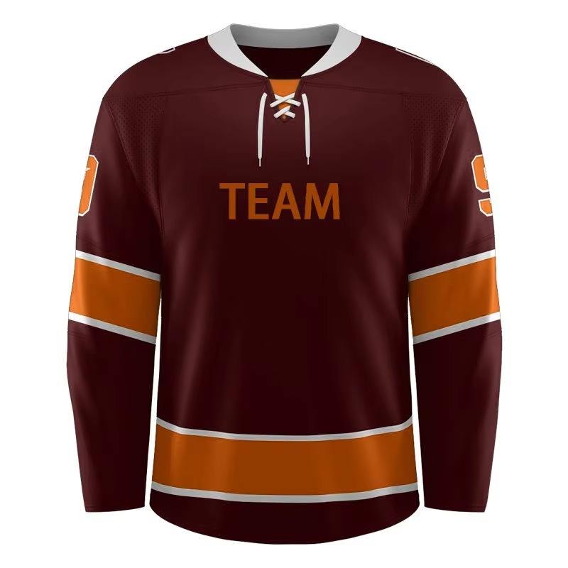เสื้อฮอกกี้น้ำแข็งแบบกำหนดเอง ชุดทีมพิมพ์ลายแบบ Sublimation เสื้อแฟนคลับขายดี โพลีเอสเตอร์ น้ำหนักเบา ระบายอากาศได้ดี แห้งเร็ว