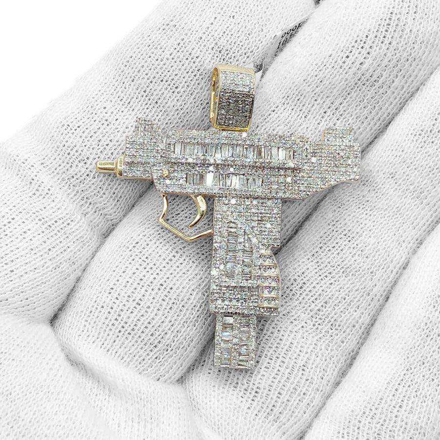 จี้รูปปืนแบบกำหนดเอง เงินแท้ 925 ชุบทอง ประดับโมอิสซาไนต์ เครื่องประดับฮิปฮอป รับรองโดย GRA ผ่านการทดสอบ หนักแน่น หรูหรา