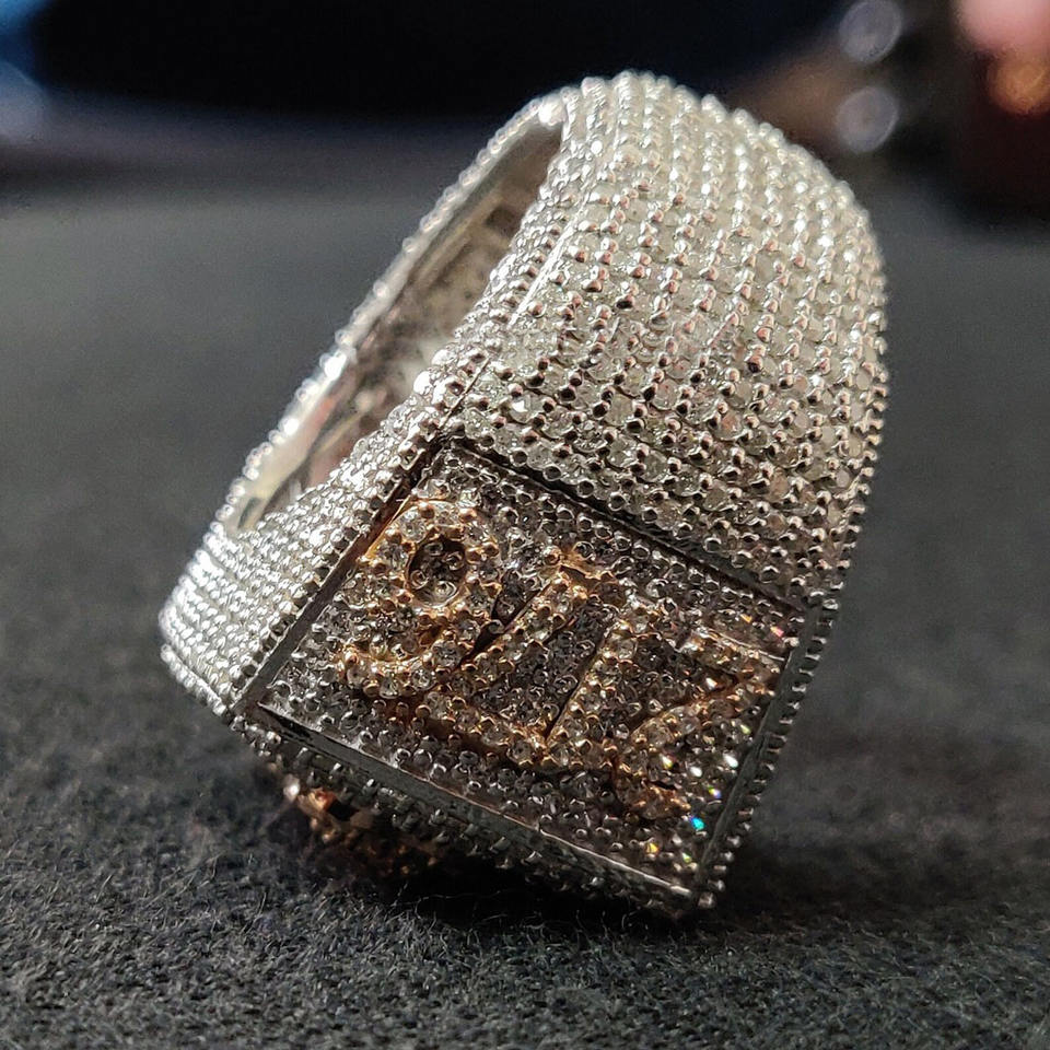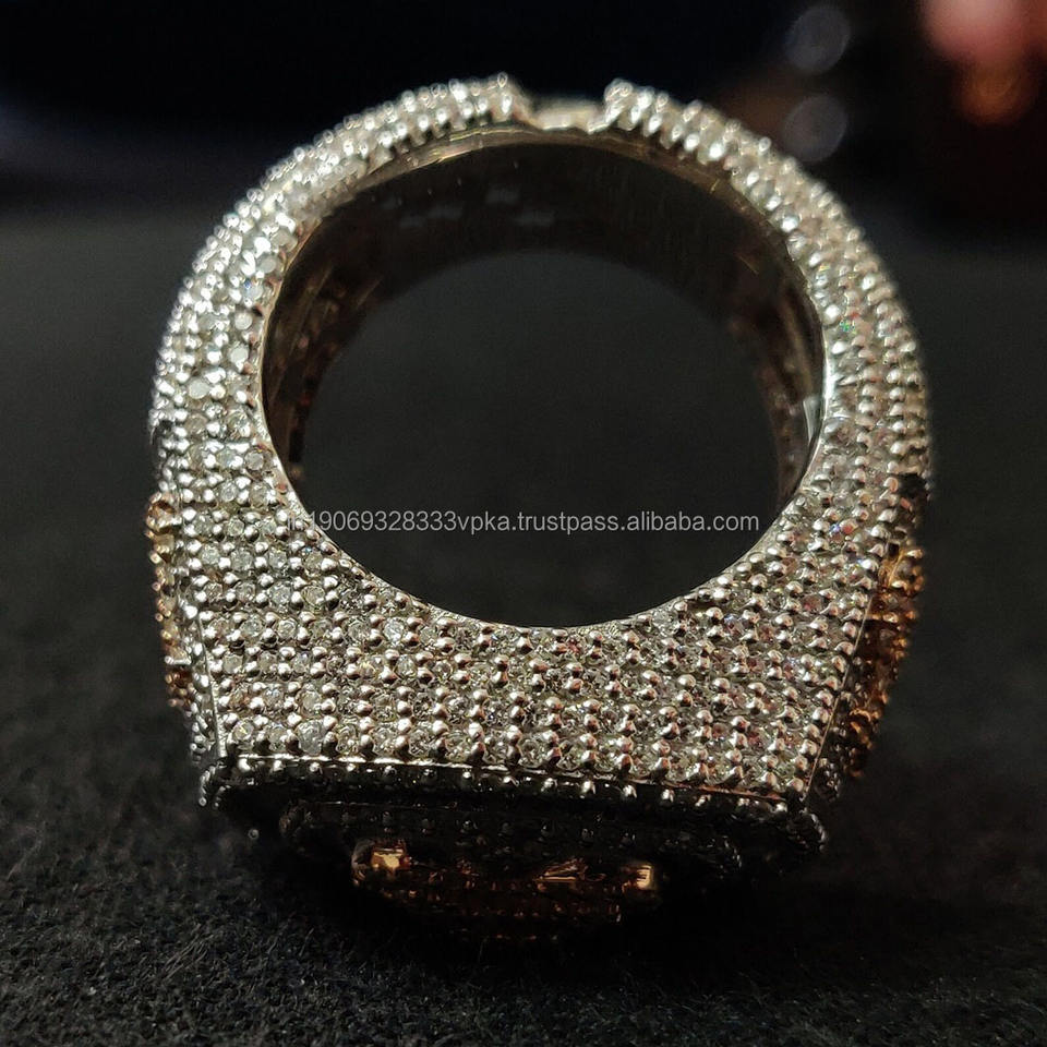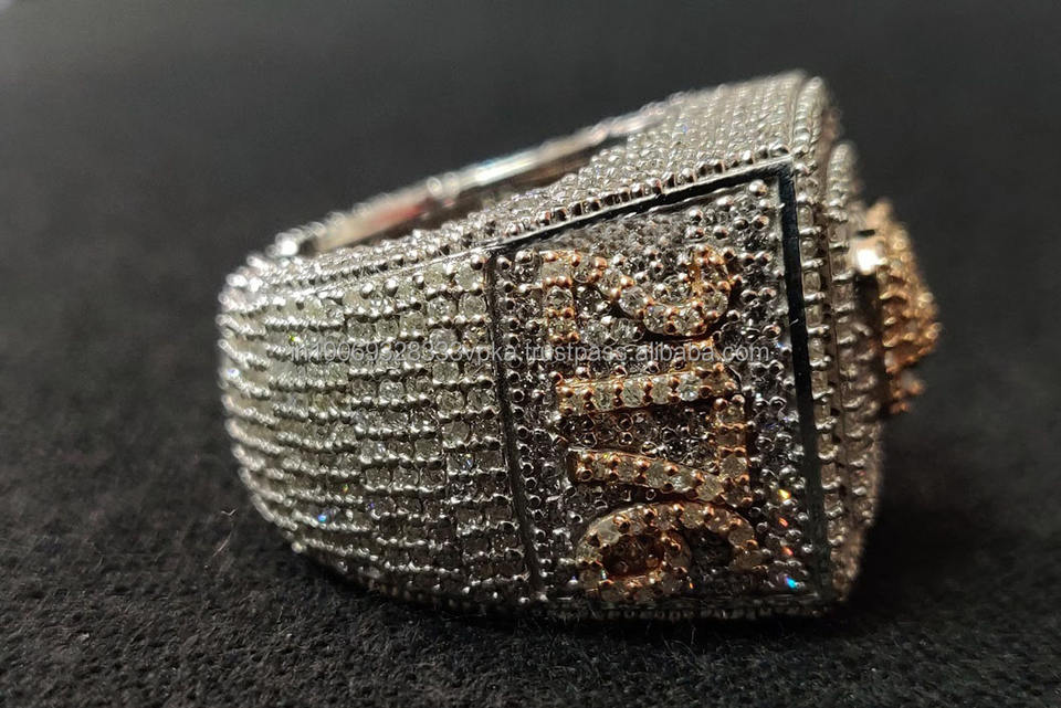 แหวนฮิปฮอปแบบกำหนดเองประดับเพชรโมอิสซาไนต์ทรงคลัสเตอร์ ตัวอักษรย่อ ทำจากเงินแท้ 925 ชุบโรเดียม แบบฝังเพชรเต็มวง สำหรับผู้ชายและผู้หญิง