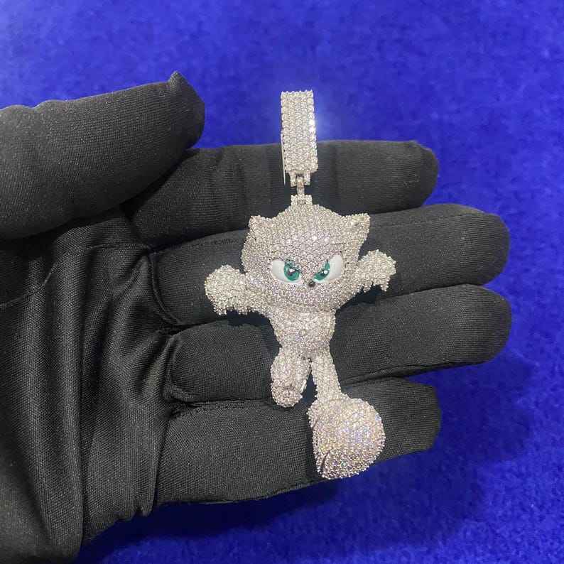จี้รูปแมว 3 มิติ แบบกำหนดเอง ประดับเพชรโมอิสซาไนต์ทรงกลม งานฮิปฮอป เครื่องประดับชั้นดี จี้และชาร์ม