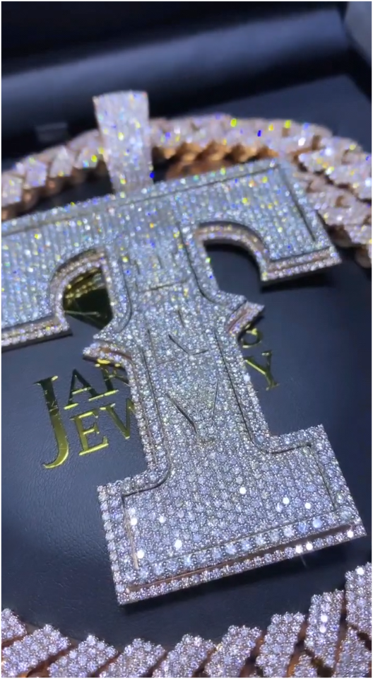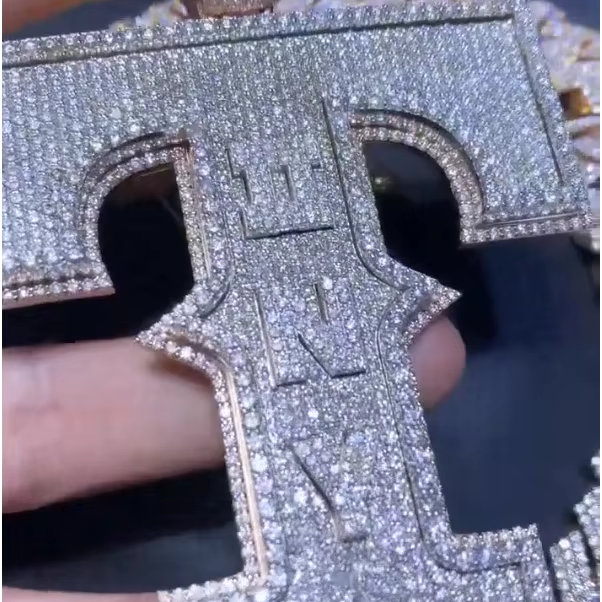 เพชรโมอิสตัดกลมประดับเพชรตัวอักษรเริ่มต้น't 'ทำด้วยมือจี้ยูนิเซ็กส์
