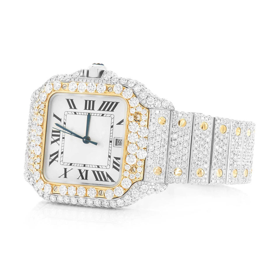 นาฬิกาแฟชั่นทรงเหลี่ยมสแตนเลสสตีล หน้าปัดกระจกประดับเพชรแบบกำหนดเอง สายขนาด 20 มม. ขนาด 41 มม. ระบบควอตซ์ สไตล์ฮิปฮอปสุดหรู