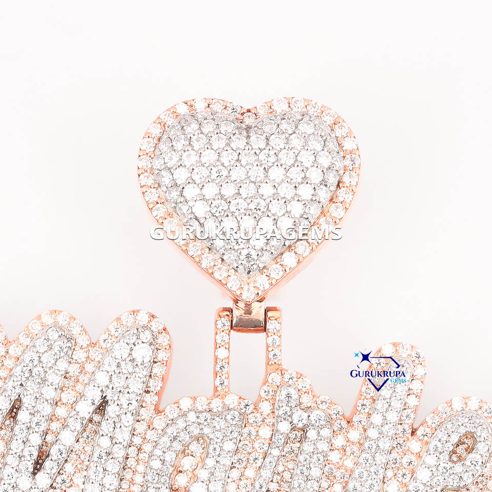 จี้เพชรรูปตัวอักษร VVS จี้หัวใจ925เครื่องประดับฮิปฮอปสีเงินสำหรับผู้ใหญ่ทำจากแล็บน้ำแข็งแบบสั่งทำ