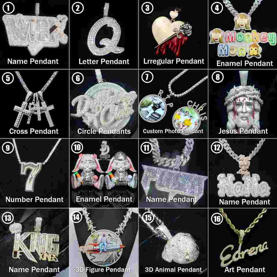 จี้การ์ตูนเพชรโมอิสออกแบบใหม่หรูหรา925เงินชุบทองจี้3D ฮิปฮอป CAD