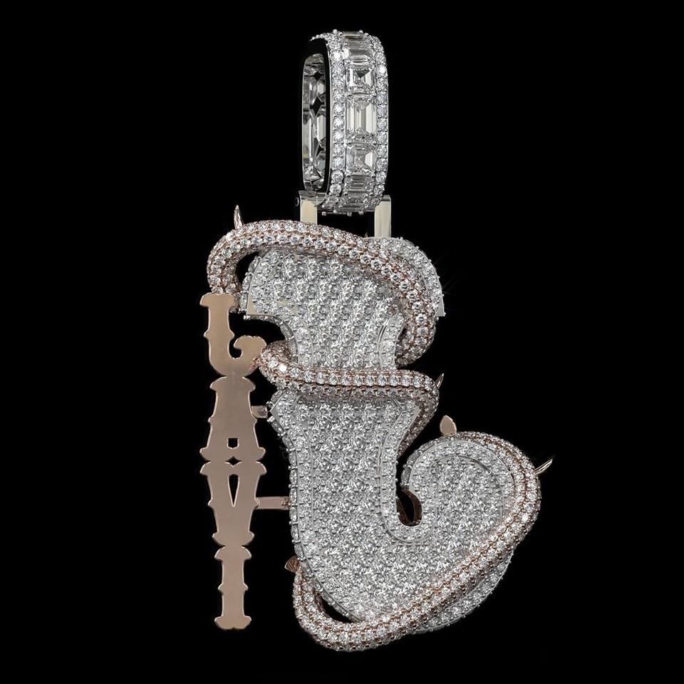 จี้และชาร์มโมอิสซาไนต์แบบกำหนดเอง ประดับเพชรเต็มตัวเรือนเงินแท้ 925 พร้อมตัวอักษรแบบกำหนดเอง ดีไซน์เฉพาะตัวเพื่อสไตล์ที่เป็นเอกลักษณ์