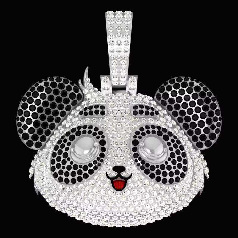 จี้เพชรโมอิสซาไนต์ดีไซน์ใหม่สุดหรู สไตล์การ์ตูน ชุบเงินแท้ 925 สีขาวผสมดำ ระดับ VVS แบบฮิปฮอป 3 มิติ เครื่องประดับโดดเด่น