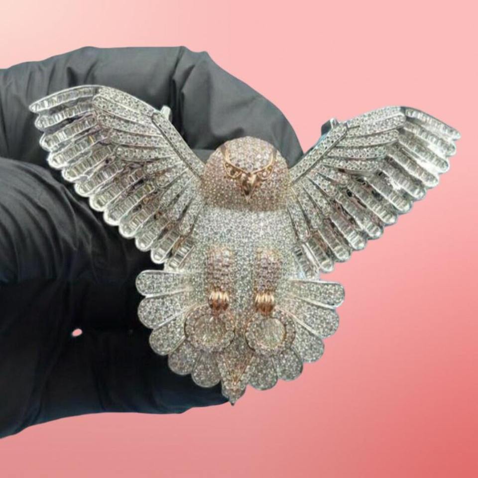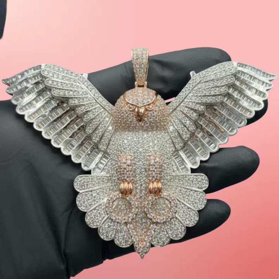 จี้นกฮูกแบบกำหนดเองประดับเพชรโมอิสซาไนต์ เงินแท้ 925 ชุบทองสองสี สไตล์ฮิปฮอป
