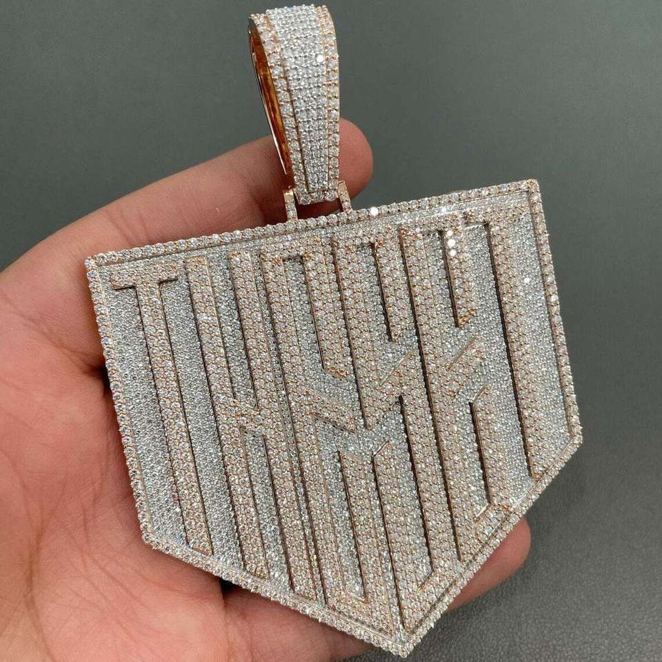จี้รูปโล่ THINK แบบฝังเพชรโมอิสซาไนต์ สไตล์ฮิปฮอป สีทอง ดีไซน์หรูหรา