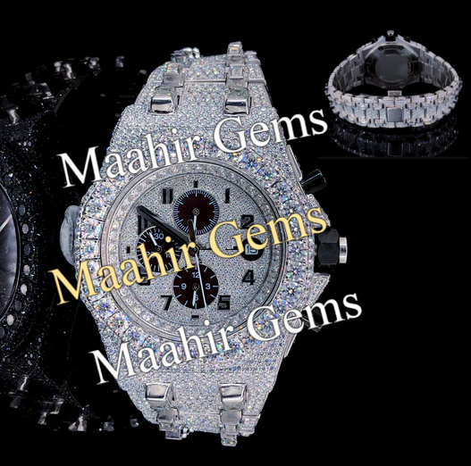 นาฬิกาโครโนกราฟผู้ชายสุดหรู ดีไซน์ฝังเพชรเต็มหน้าปัด ตัวเรือนสแตนเลสสตีลเคลือบสีทูโทน พร้อมกระจกหน้าปัดแบบพิเศษ กันน้ำได้ 10 บาร์