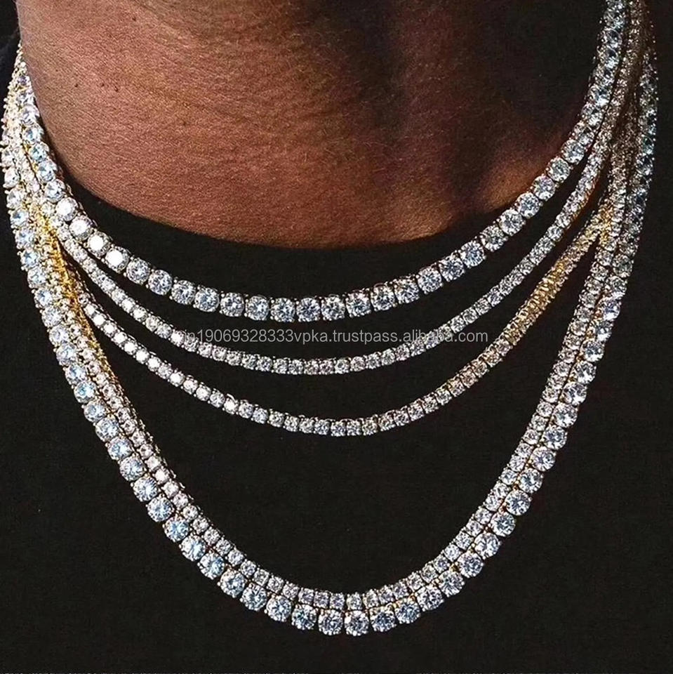 สร้อยคอเทนนิสเงินแท้แบบกำหนดเอง ขนาด 3 มม. 4 มม. 5 มม. 6 มม. สำหรับผู้ชาย ผู้หญิง สไตล์ฮิปฮอป ประดับเพชรโมอิสซาไนต์ ของขวัญเครื่องประดับ
