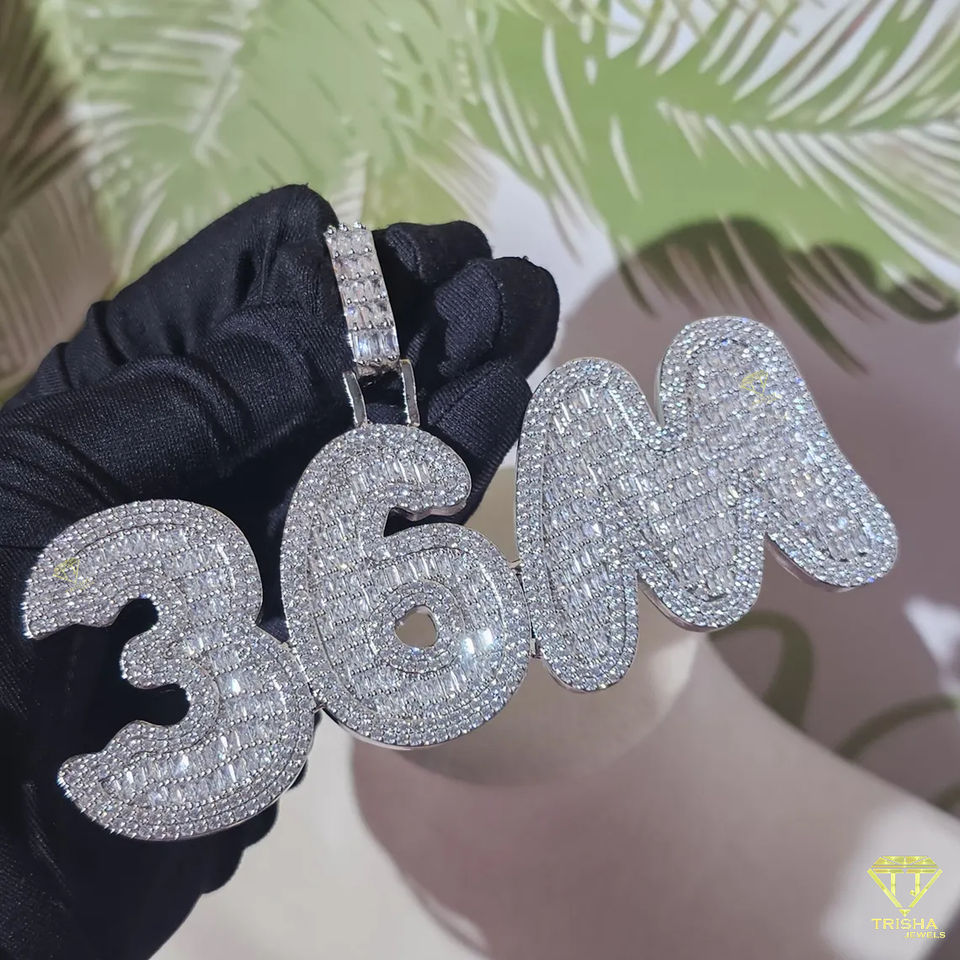 Custom Icy Baguette Big Letters Pendant in VVS Lab Grown Diamonds with 925 Sterling Silver Personalized Hip Hop Jewelry