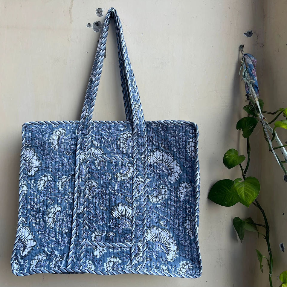 กระเป๋าสะพายไหล่ผ้าควิลท์ลายดอกไม้สำหรับศิลปินชาวอินเดีย