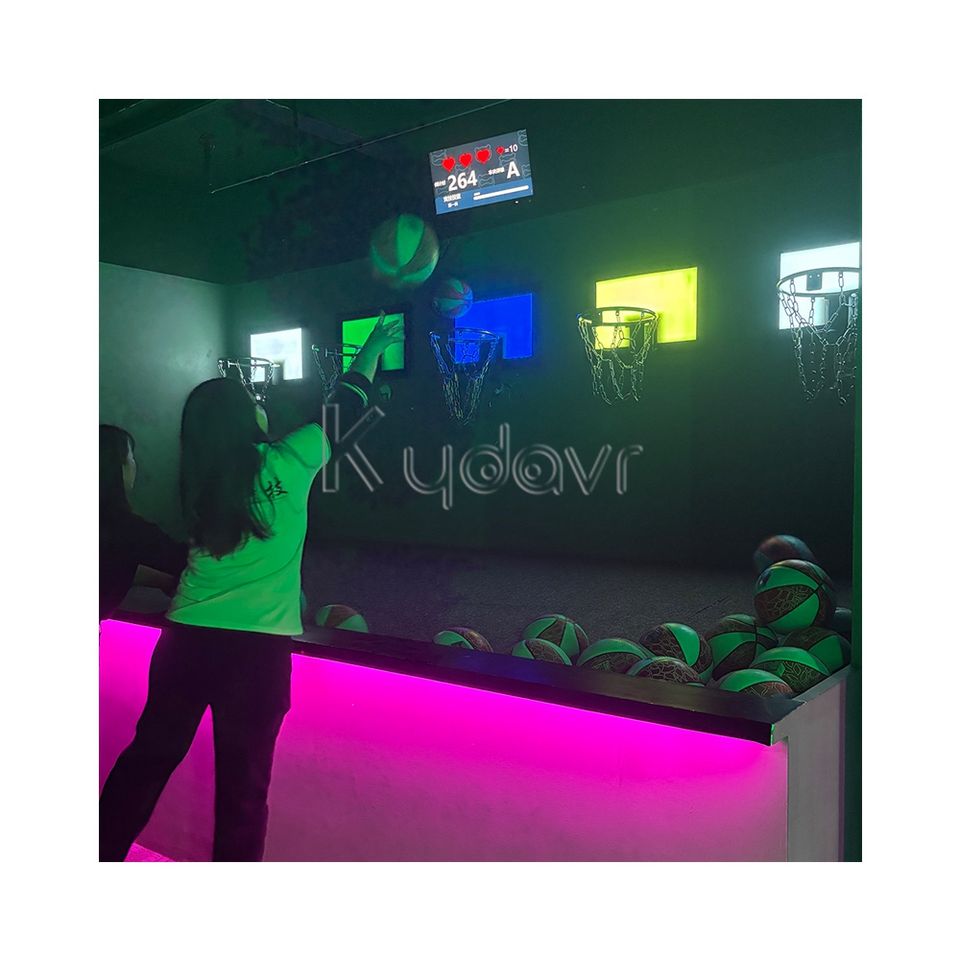 ไฟ LED แบบตารางพิกเซลการแข่งขันการแข่งขันบาสเก็ตบอลเปิดใช้งานห่วงหลักที่ท้าทายสำหรับห้องเกมกีฬาในร่มแบบกำหนดเอง