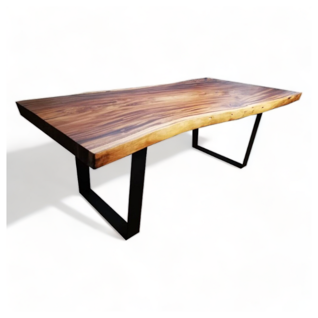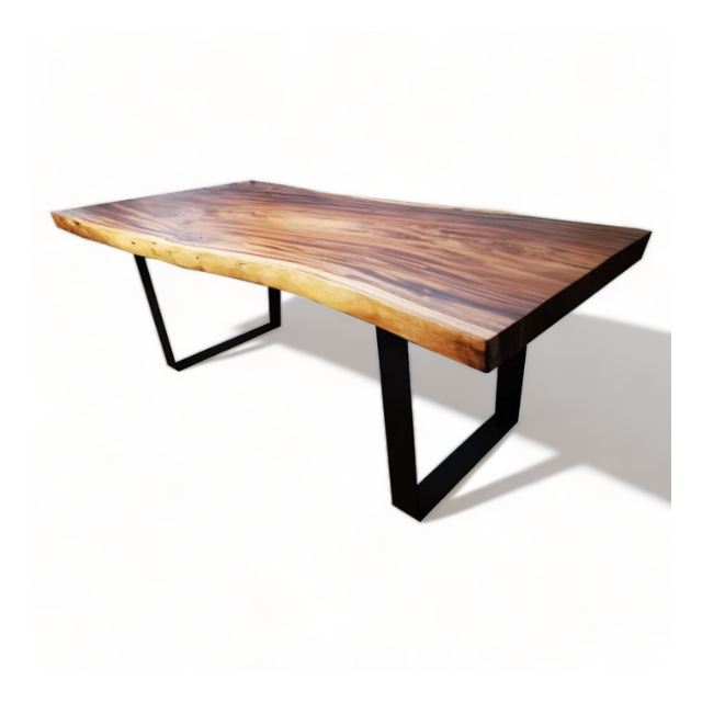 โต๊ะรับประทานอาหารไม้อะคาเซียขอบแบบสดทำจากไม้เนื้ออ่อนธรรมชาติขาโลหะโต๊ะสำหรับร้านอาหารเฟอร์นิเจอร์ตามสั่ง