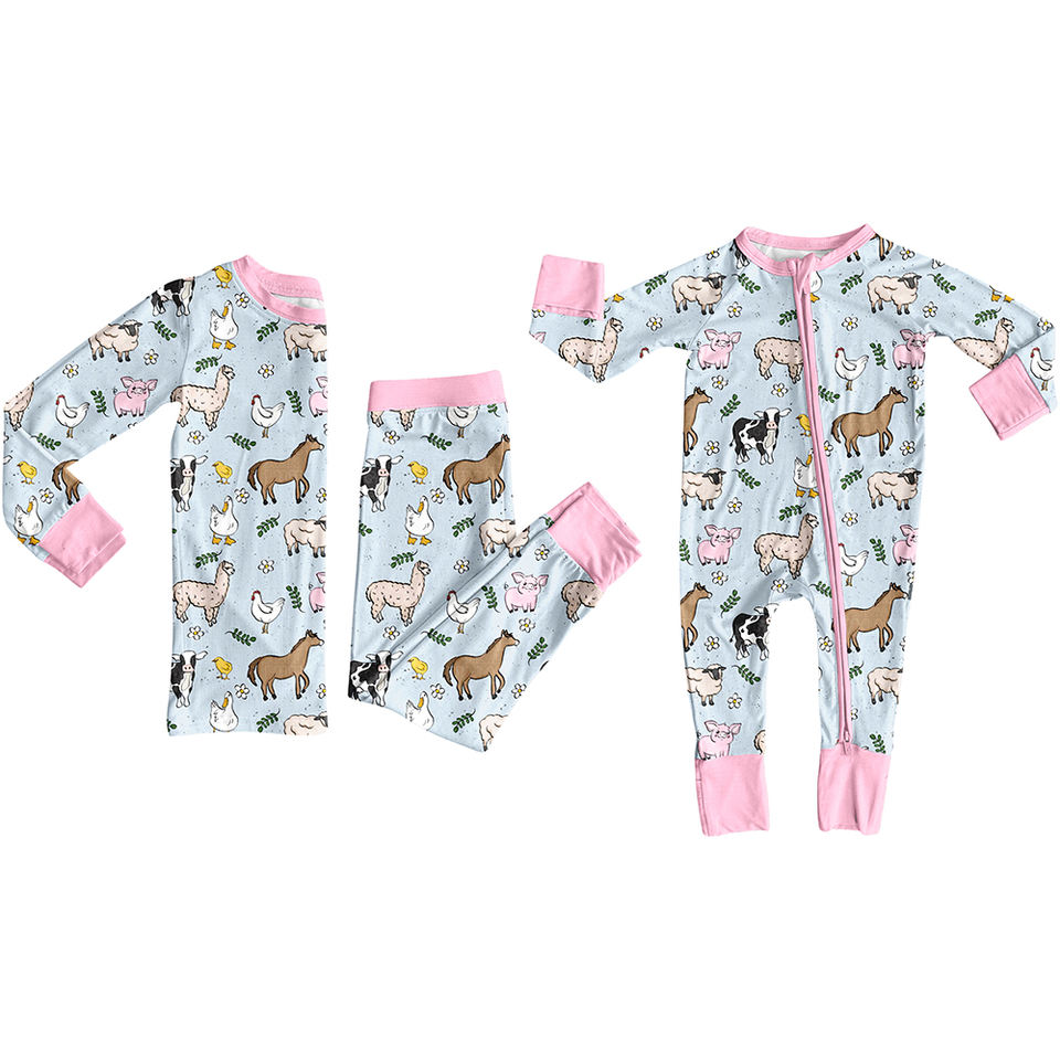 ชุดหมีมีซิปสำหรับเด็กทารกชุดนอนเด็กผู้หญิงชุดสัตว์เลี้ยงในฟาร์มขายส่งเสื้อผ้าสำหรับน้องสาวเสื้อผ้าบูติกตามสั่ง