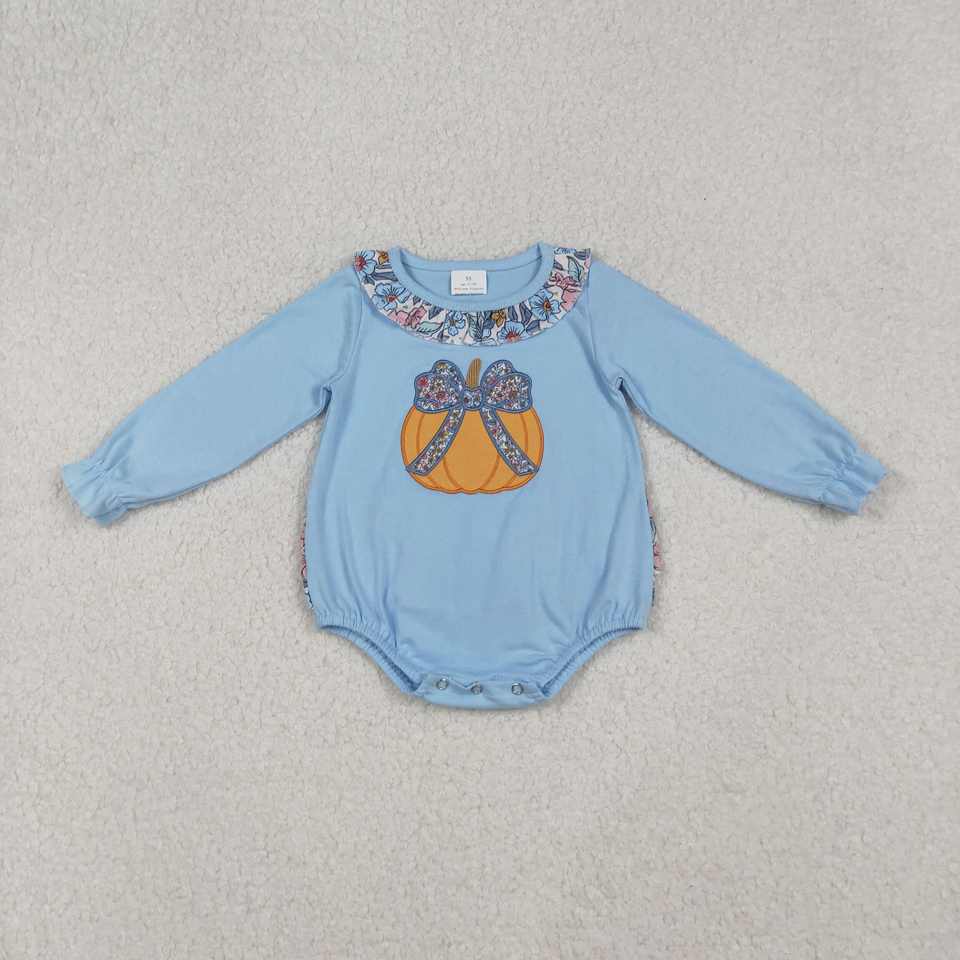 ชุดหมีแขนยาวพิมพ์ลายฟักทองดอกไม้สีฟ้าสำหรับเด็กผู้หญิง LR2441 RTS