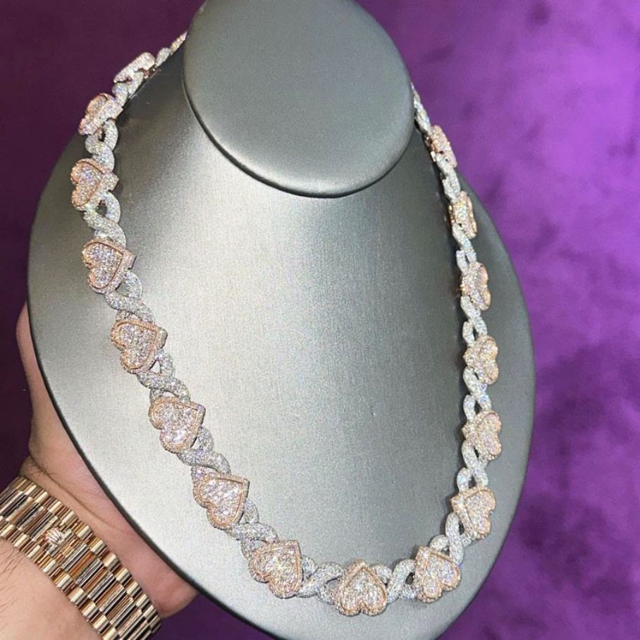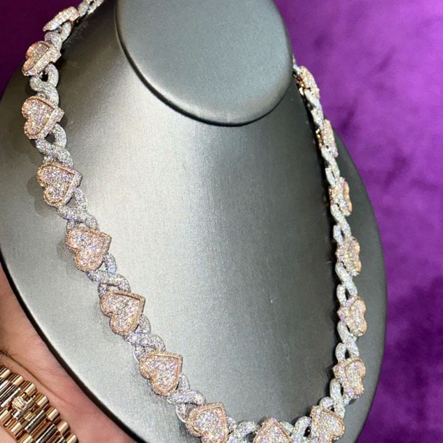สร้อยคอรูปหัวใจแบบอินฟินิตี้สั่งทำพิเศษ 2 สี ประดับเพชรโมอิสซาไนต์ VVS ชุบทองคำแท้ เงินแท้ 925 สร้อยคิวบาลิงค์รูปหัวใจ เครื่องประดับ