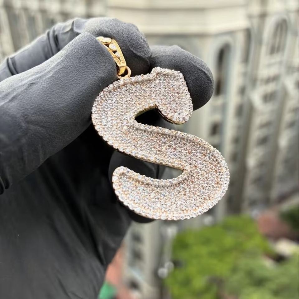 จี้เพชรโมอิสซาไนต์เงินแท้ 925 ชุบเงินหรูหรา สไตล์ฮิปฮอป สำหรับผู้ชายและผู้หญิง สวมใส่ได้ทุกวัน พร้อมอักษรย่อสั่งทำพิเศษ
