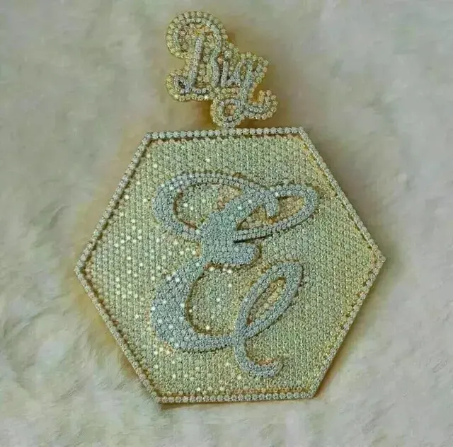 จี้ตัวอักษรแบบกำหนดเองประดับมอสซาไนต์ชุบทองคำขาว เงินแท้ 925 สไตล์วินเทจ เครื่องประดับสำหรับทุกเพศ