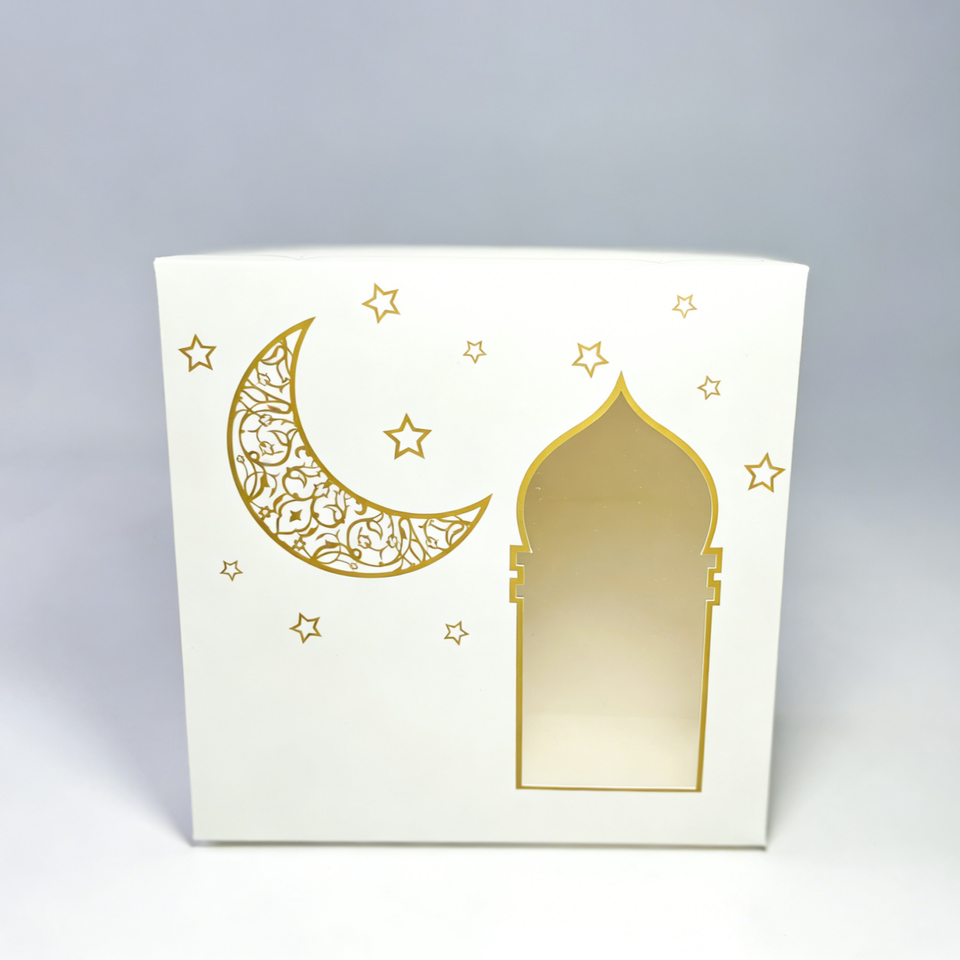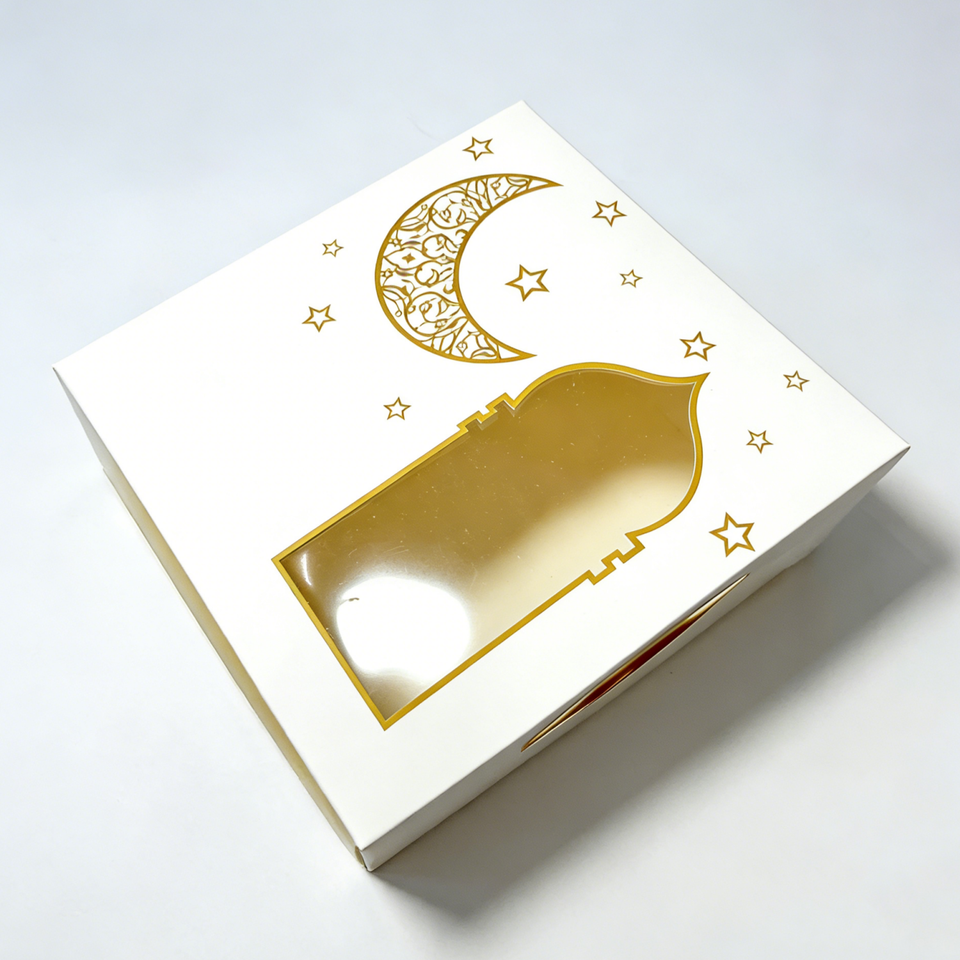 กล่องของขวัญกระดาษปั๊มฟอยล์ทองแบบอิสลามสำหรับรอมฎอนและอีดมูบาร็อค