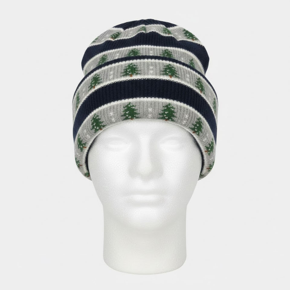หมวกบีนนี่ถักไหมพรมลายแจ็คการ์ดให้ความอบอุ่น