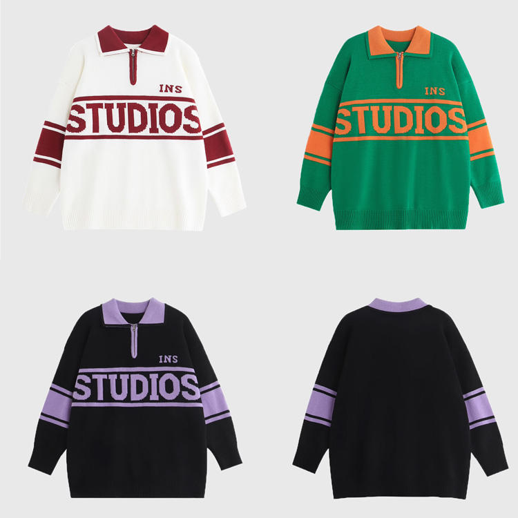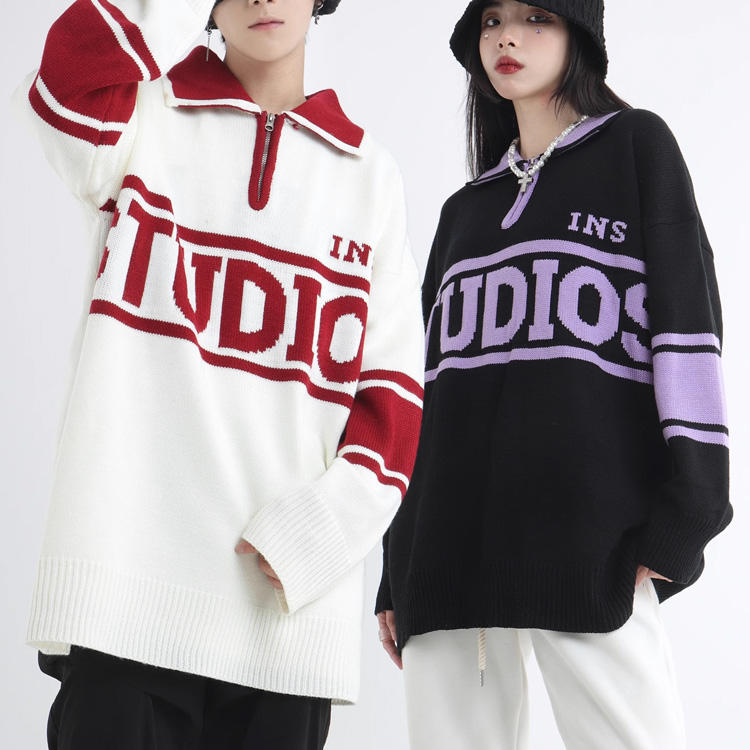 เสื้อสเวตเตอร์ผ้าแจ็คการ์ดสำหรับผู้ชายเสื้อสเวตเตอร์แบบสวมหัวเสื้อถักโอเวอร์ไซส์