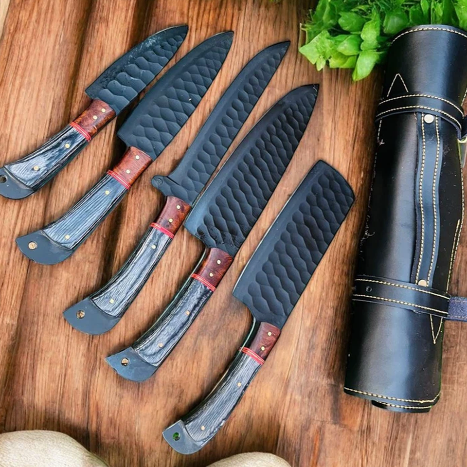 ชุดมีดทำครัวญี่ปุ่นแบบกำหนดเอง ใบมีดเหล็กดามัสกัสตีขึ้นรูปด้วยมือ ด้ามจับไม้คุณภาพสูง ใช้กับเครื่องล้างจานได้ เป็นมิตรกับสิ่งแวดล้อม