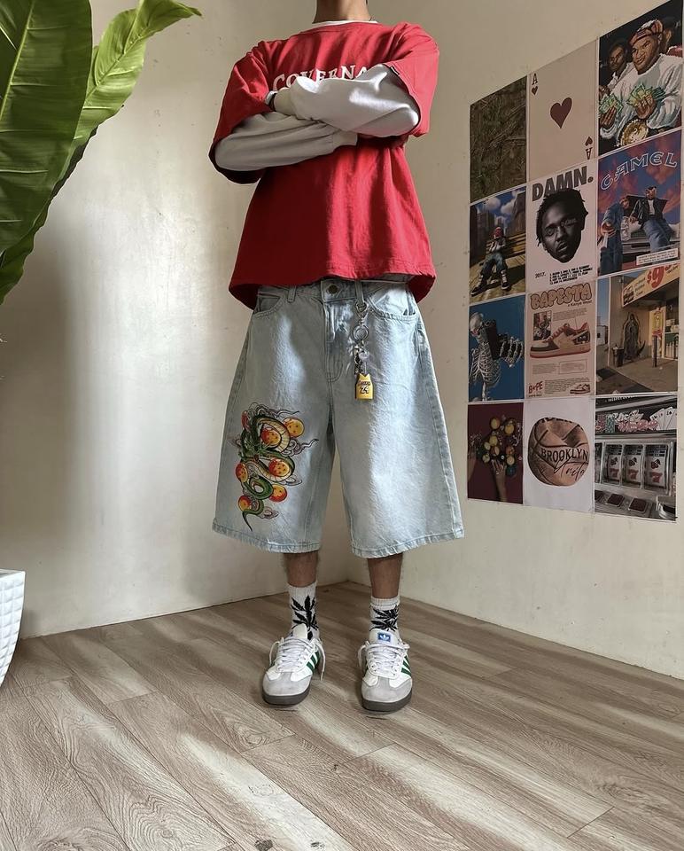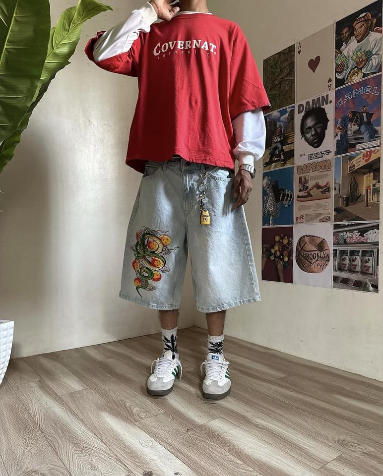 กางเกงยีนส์ขาสั้นผู้ชายแบบสั่งทำ ปักลายโลโก้ด้วยเครื่องจักร ระบายอากาศได้ดี กันยับ กันลม ลายปะติดปะต่อ สไตล์สตรีทแวร์สำหรับฤดูร้อน