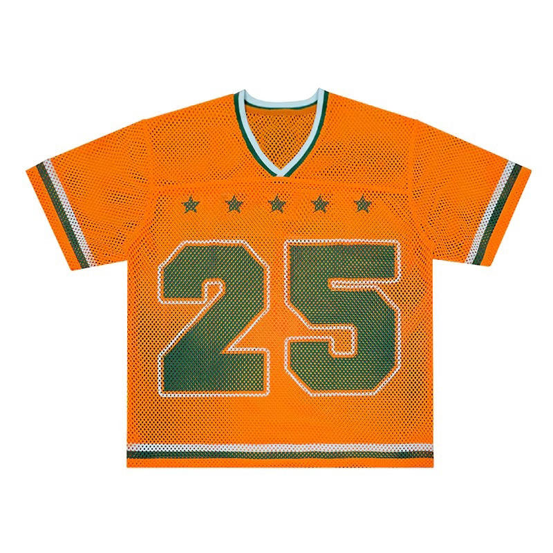 เสื้อยืดโอเวอร์ไซส์แบบครอปพิมพ์ลายสตรีทแวร์สำหรับผู้ชาย เหมาะสำหรับใส่ฝึกซ้อมฟุตบอล ทำจากผ้าตาข่าย