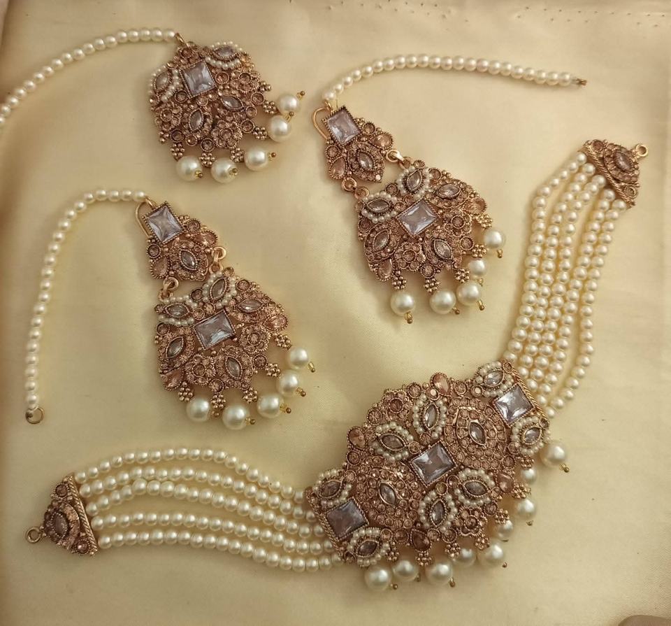 เครื่องประดับงานปาร์ตี้สำหรับผู้หญิงงานแต่งงานแบบปากีสถานของอินเดียเครื่องประดับประดิษฐ์ชุบทองแบบโบราณออกแบบได้ตามต้องการ