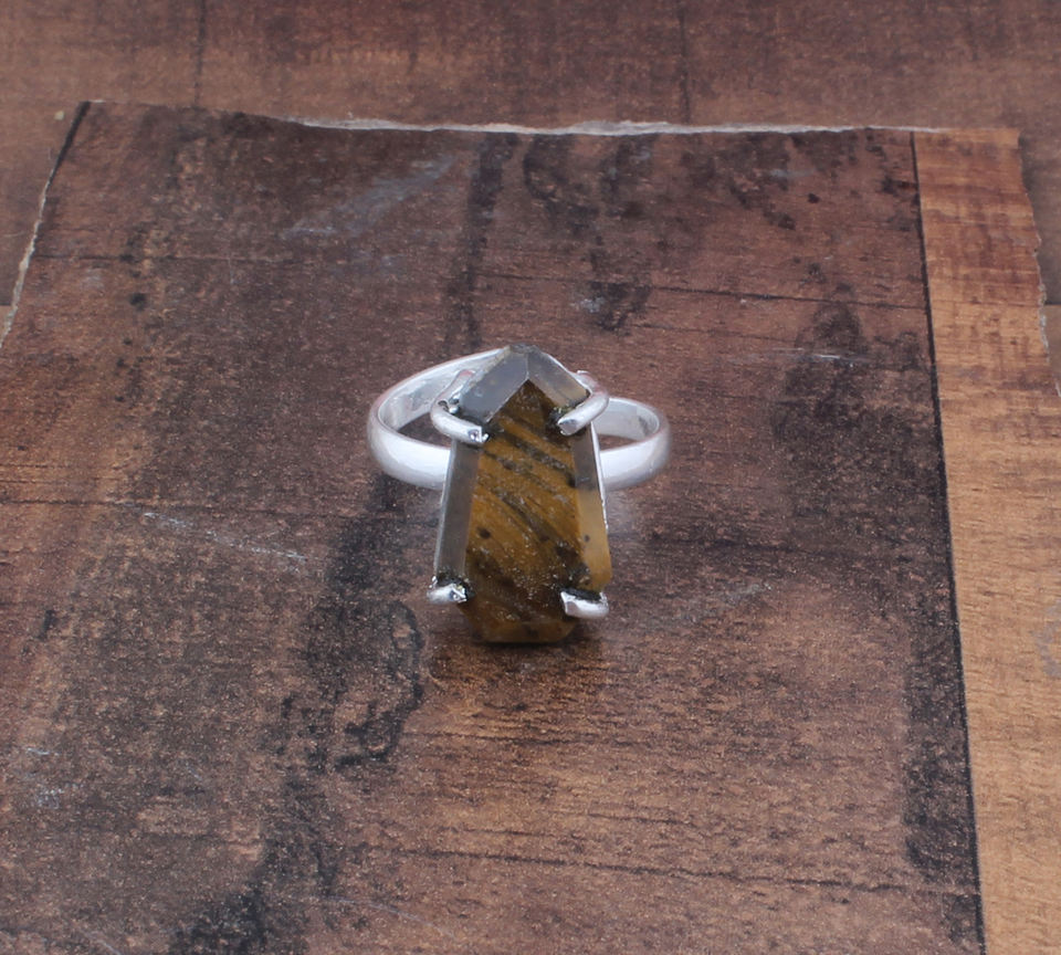 ผู้ผลิตเครื่องประดับตามสั่ง แหวนเงินแท้ 925 ประดับพลอยตาเสือธรรมชาติทรงโลงศพ ดีไซน์คลาสสิกสำหรับผู้หญิง เหมาะสำหรับงานปาร์ตี้