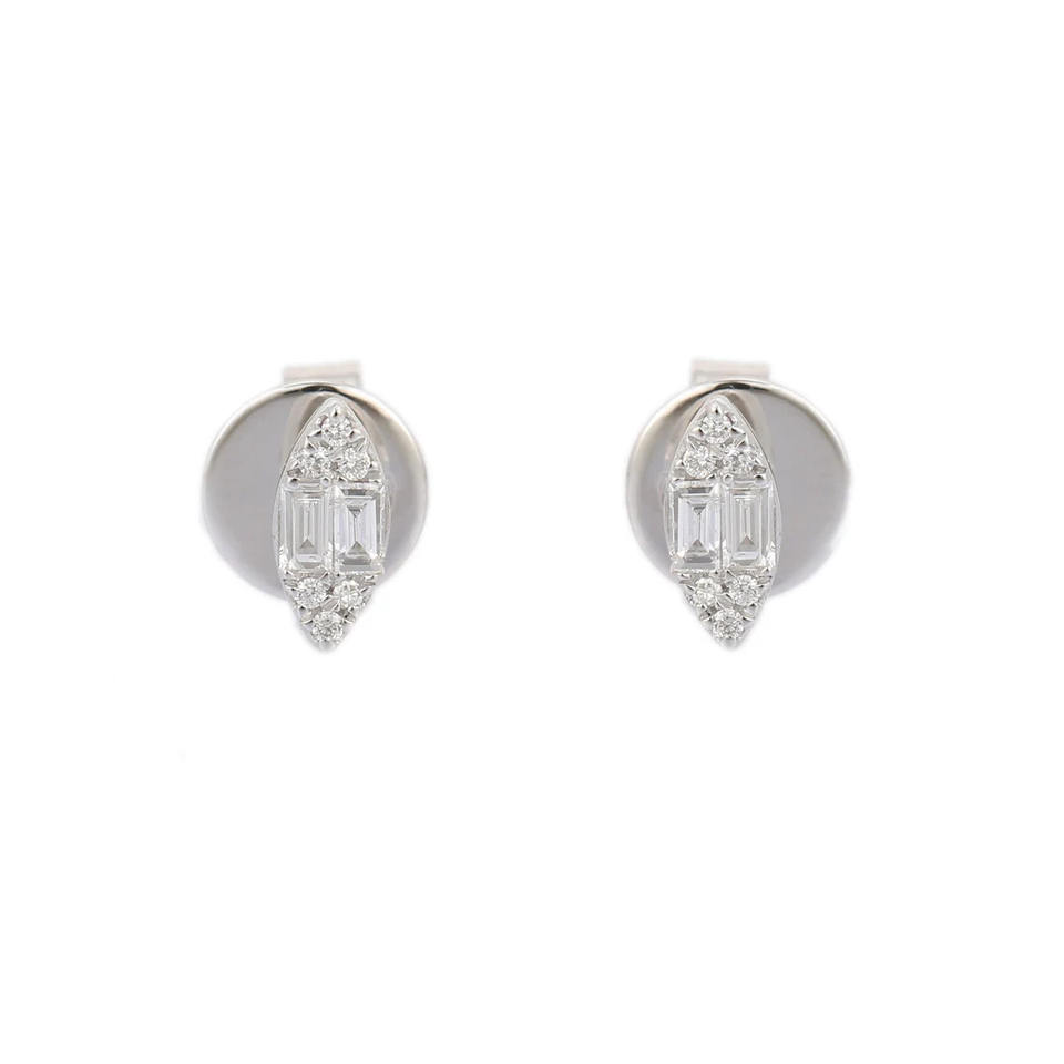 Custom Jewelry Natural Baguette and Round Diamond Gemstone Earring Studs 18K Solid White Gold Solitaire Earrings for Women Girls