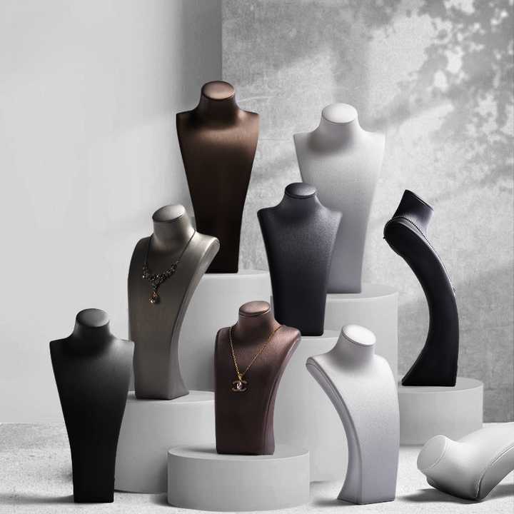 Custom Jewelry Necklace Display Stand Classic PU Leather Human Neck Model Pendant Holder for Jewelry Photography