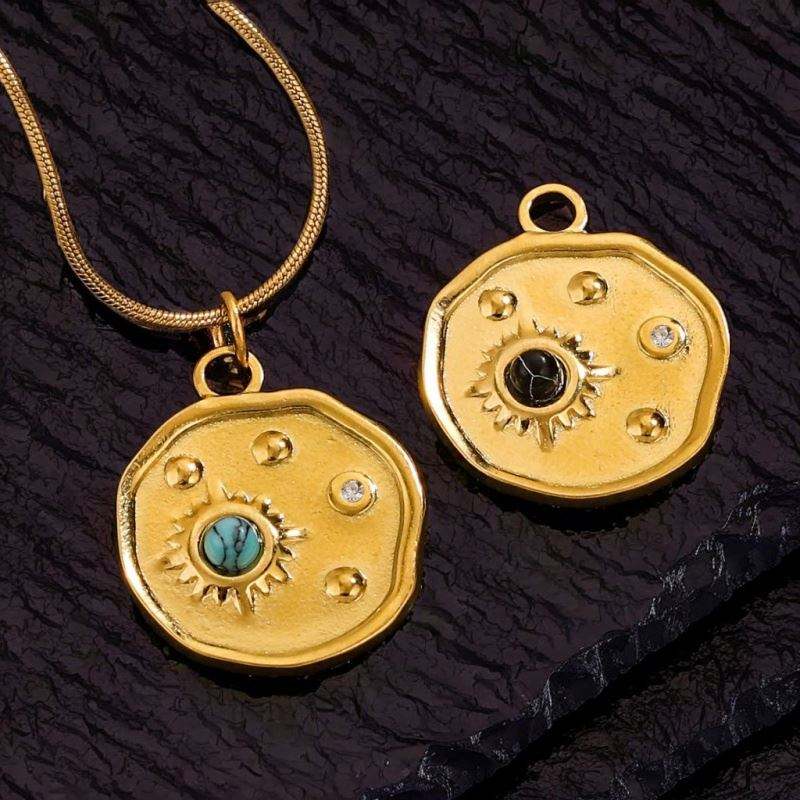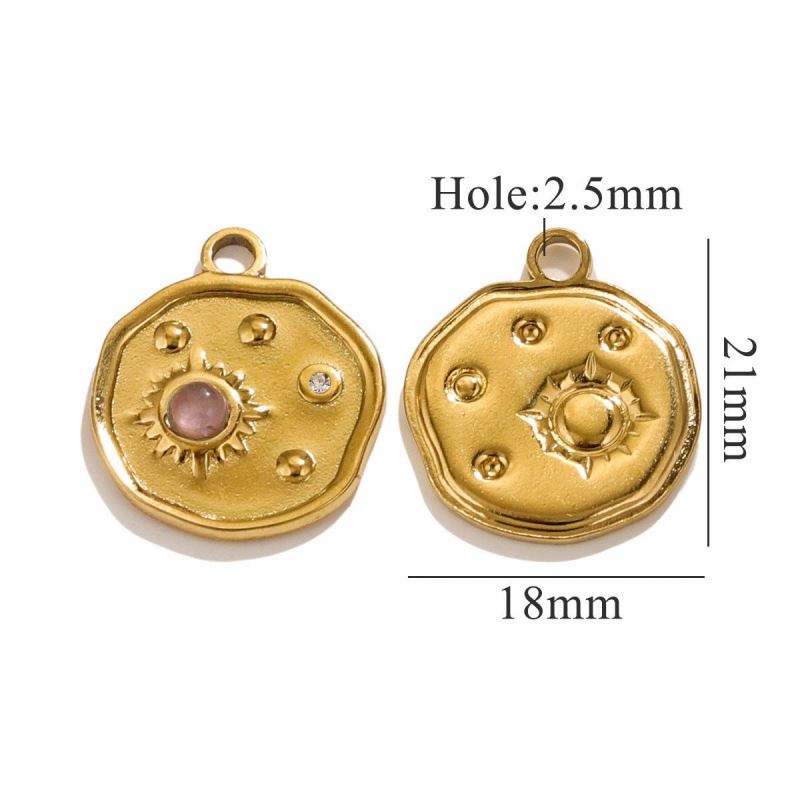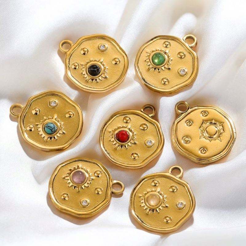 เครื่องประดับเหรียญกลมเสน่ห์ดวงจันทร์ดวงอาทิตย์หินธรรมชาติฝัง18K PVD ชุบทองจี้เสน่ห์สำหรับทำเครื่องประดับวินเทจ