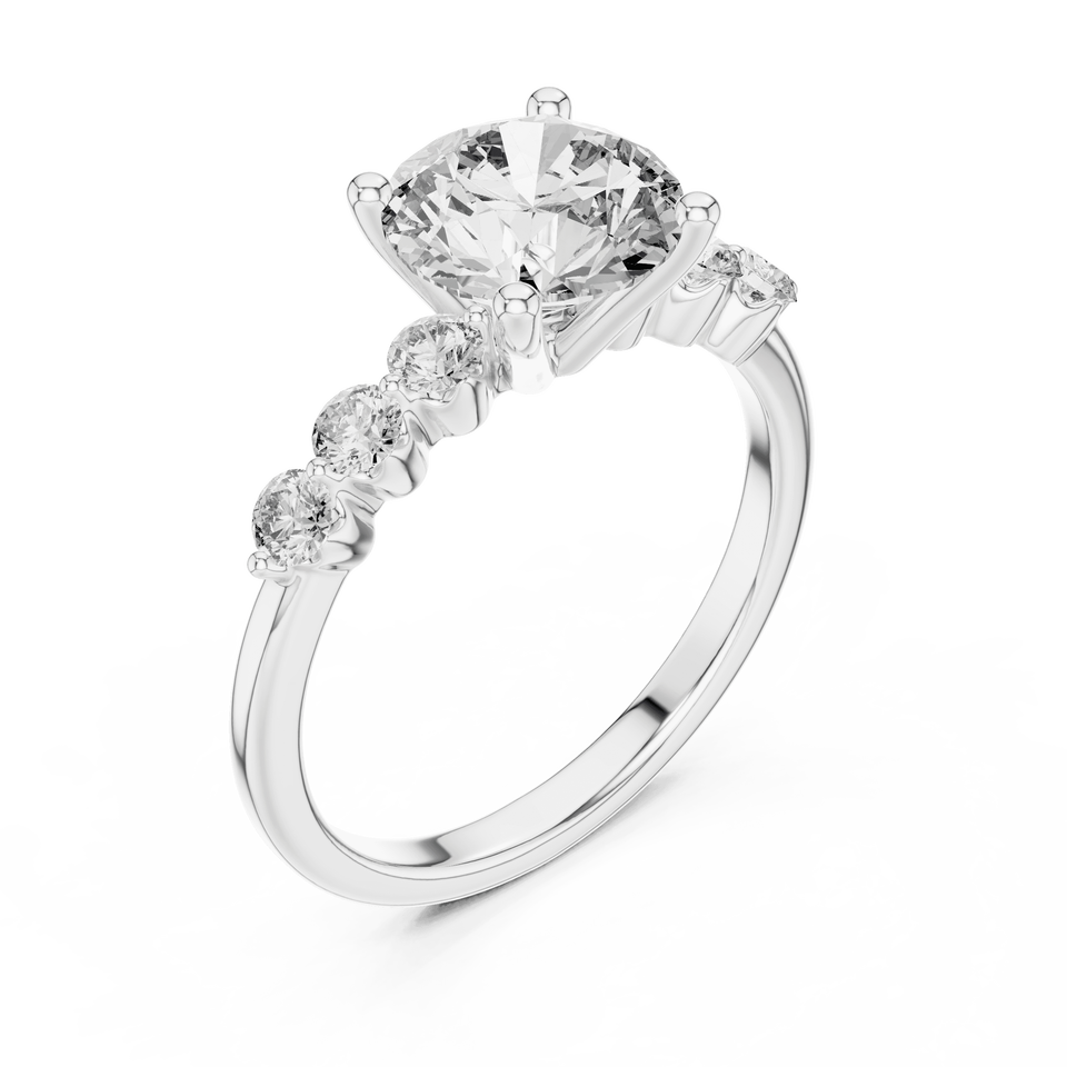 แหวนหมั้นเพชรทรงกลม 2 กะรัต แบบสั่งทำพิเศษ พร้อมเพชรเม็ดเล็กประดับด้านข้าง ตัวเรือนทอง เงิน หรือแพลตตินั่ม ขายส่ง