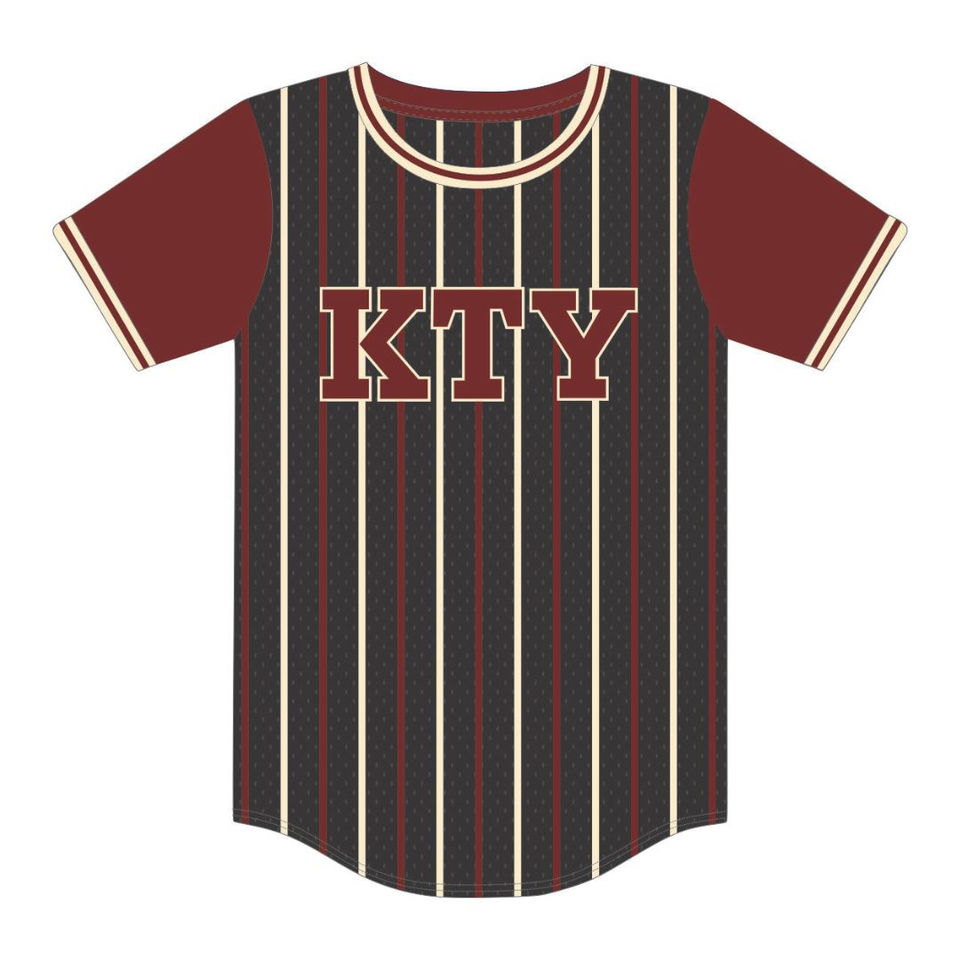Custom KAP Black Pinstripe Pullover Baseball Jersey 100% Polyester Mesh Fraternity T Shirt with Embroidered Applique Logos