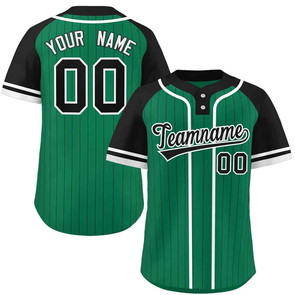 เสื้อซอฟต์บอลแขนแร็กแลนแฟชั่นลายทางสีเขียวเคลลี่ ดำ-ขาว แบบสั่งทำพิเศษ ติดกระดุมสองเม็ด ของแท้