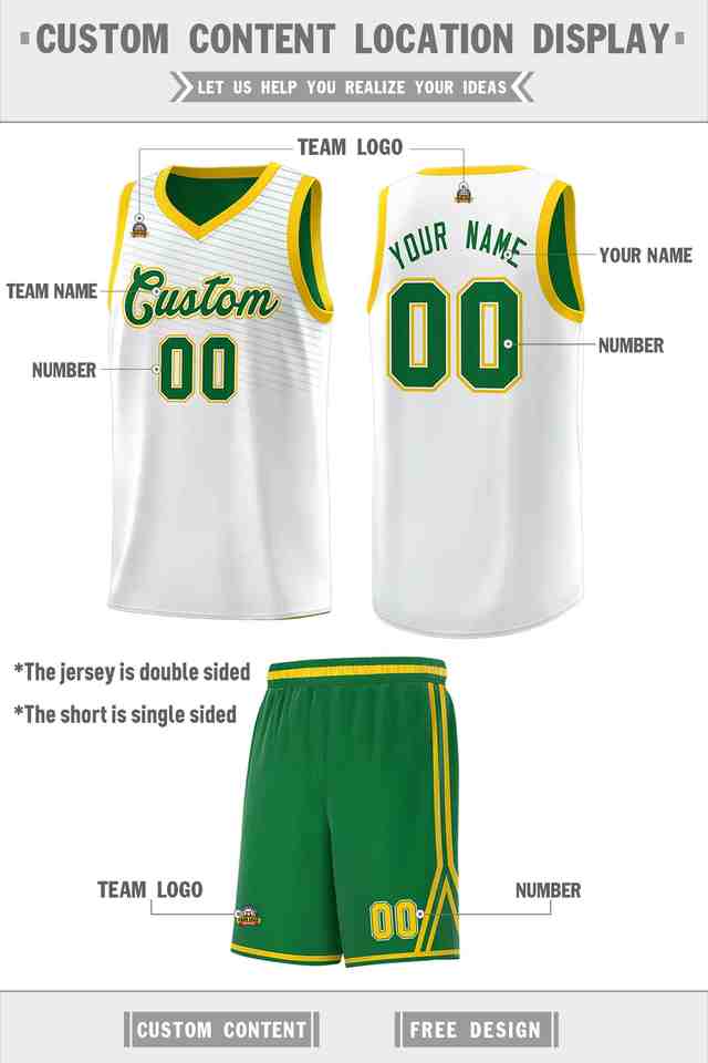 เสื้อบาสเก็ตบอลแบบสปอร์ตสองด้านลายสลักที่อกสีเขียวเคลลี่ขาวแบบกำหนดเอง